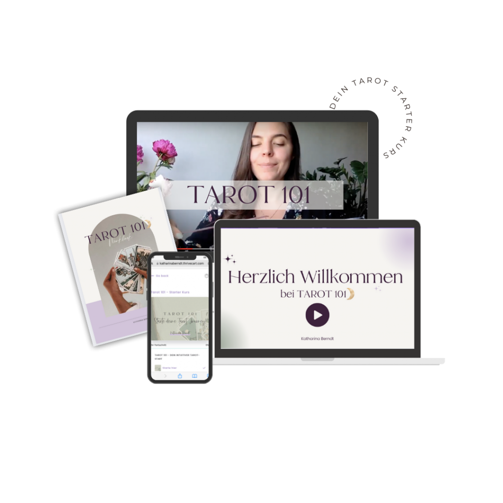 • als Bonus & zur Vorbereitung: TAROT 101 mit 10 Lektionen, um deine Tarot-Reise direkt zu starten, im Wert von 111€